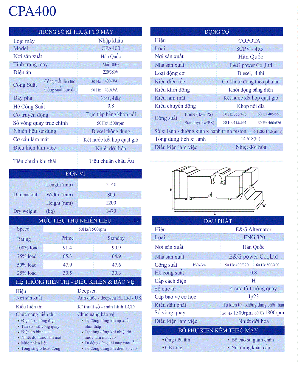 Bạn đang đắn đo khi lựa chọn một dòng máy phát điện để đảm bảo nguồn điện sử dụng cho gia đình, cho kinh doanh? COPOTA CPA400 là dòng máy phát điện tầm trung, chạy bằng động cơ Diesel 4 thì chất lượng hiện nay. Đây là một trong những sản phẩm được Thuận Phong phân phối và cung cấp trên thị trường cả nước. Đảm bảo uy tín về giá cả cũng như các chế độ bảo hành. Nếu khách hàng đang có nhu cầu tìm mua máy phát điện Diesel, máy phát điện Biogas hay các dòng máy đã qua sử dụng. Hãy liên hệ với Thuận Phong qua 0909 724 830 để chọn được cho mình một sản phẩm phù hợp nhất.