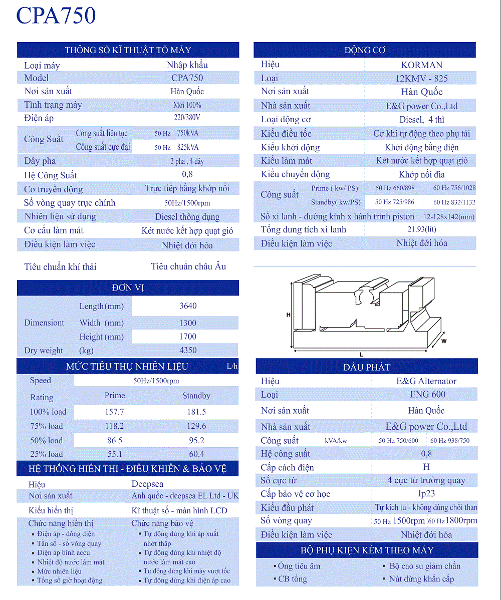 COPOTA CPA750 là một dòng máy phát điện được nhập khẩu từ Hàn Quốc. Chạy bằng động cơ Diesel 4 thì. Đây là loại động cơ tiết kiệm cả về nhiên liệu và giá cả. Thuận Phong là đơn vị cung cấp các dòng máy phát điện trên thị trường. Có rất nhiều dòng khác nhau, phù hợp với mọi đối tượng. Khách hàng có thể liên hệ qua 0909 724 830 để được nhân viên tư vấn về sản phẩm, giá cả và các chế độ bảo hành của các sản phẩm.
